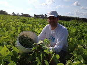 Gleaning is back with a vengance! Well, for me it is. Unfortunately the opportunities have recently been solely weekday, so when Sandi sent the email asking us to be at the ready for this past Saturday my wife and I blocked out the time. The morning was spent at the KYV farm off of 16A which is near World Golf Village. It was a beautifully crisp Saturday and the first vegetable glean. Our target crop was green beans and while a bit less demanding than picking citrus there was considerable effort needed to maneuver through the bushes so that we did not destroy the entire plan.
